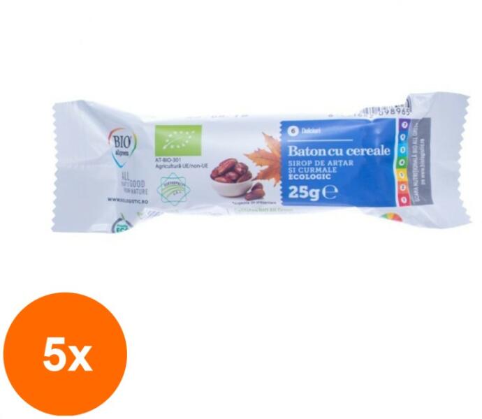 Bio All Green Set 5 x Baton cu Cereale, Sirop de artar si Curmale Eco, Bio All Green, 25 g (OIB-5xBLG-2098965)