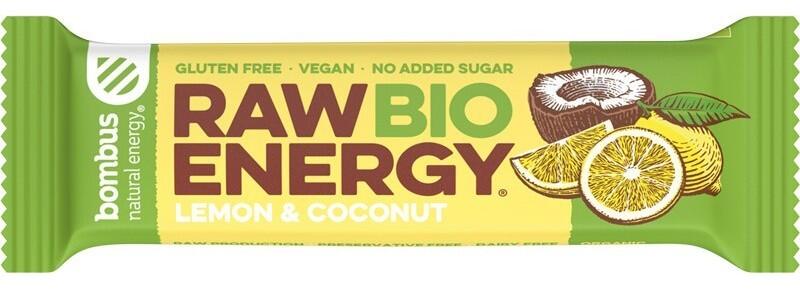 Baton energizant bio, Raw Energy, cu lamaie si nuca de cocos 50g Bombus