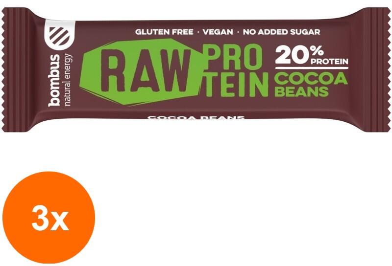 bombus Set 3 x Baton Proteic cu Boabe de Cacao, 20% Proteine, 50g Bombus (ORP-3xBB31204)
