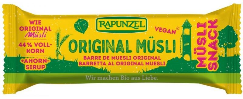 Musli Bio Snack Rapunzel: clasicul musli consistent și fructatsub forma unei gustăriconține, pe lângă fulgii de cereale sănătoși, toate ingredientele verificate și folosite în rețeta de rețeta de Musli Original Rapunzel, cum ar fi delicioase alune prăjite, stafide dulci, semințe de floarea-soarelui și hrișcă. Gustarea cu musli are o dulceață subtilă datorită combinației echilibrate de sirop de orez și sirop de arțar. ără adaos de zahăr rafinat, arome sau conservanți, acest baton oferă energie din surse curate și este ideal pentru momentele active ale zilei. Poate fi consumat ca o gustare între mese, la școală, în drumeții sau la birou. Textura sa echilibrată combină crocantul cu suculentul fructelor, pentru un gust autentic și plăcut. Vegan, fără gluten și fără compromisuri, Müsli Snack Original este expresia unei alimentații conștiente și echilibrate.